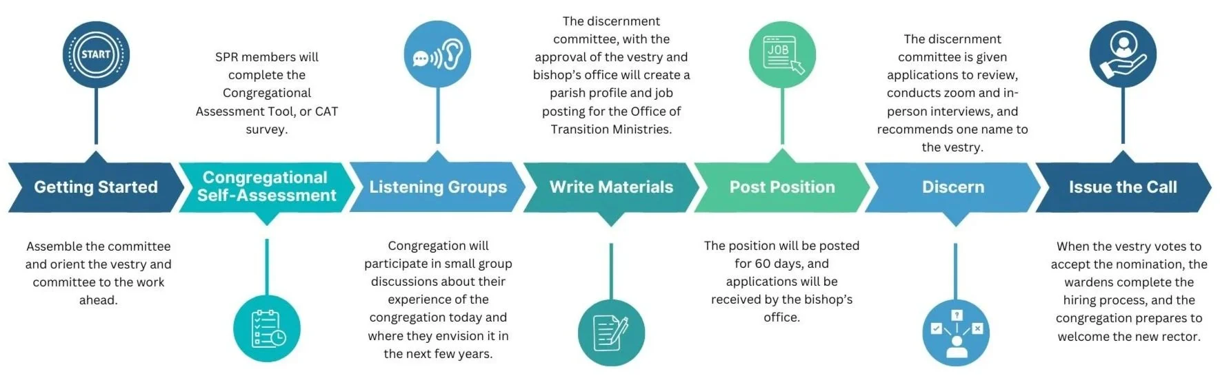 A poster-size version is available for viewing in the narthex. Following each liturgy, a member of the Rector Discernment Committee will be available near the poster to answer questions. Currently, we are in the “Post Position” phase.